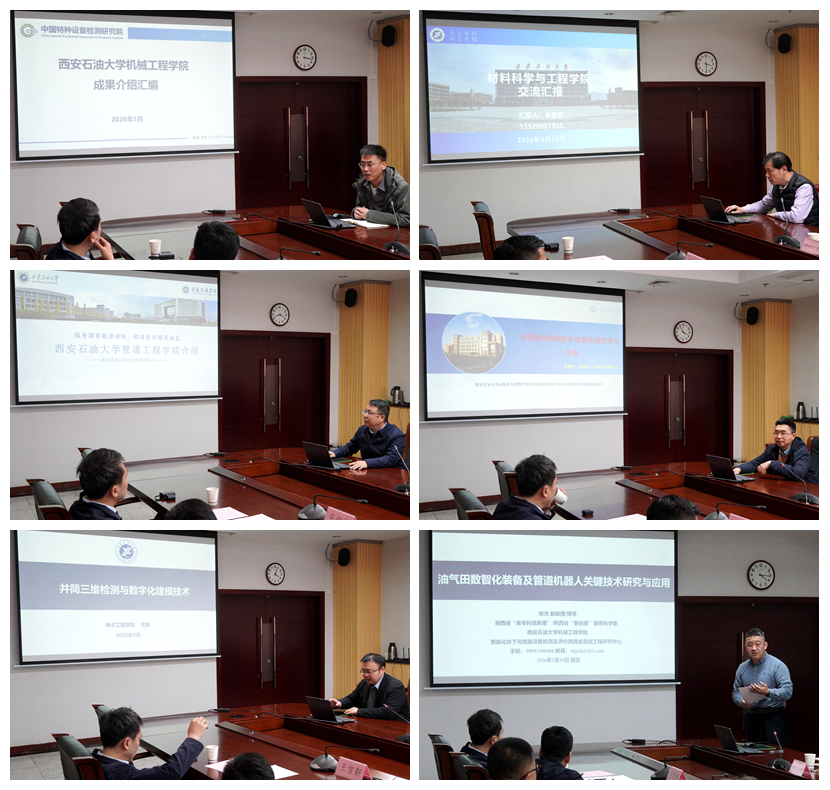 在交流環(huán)節(jié),中國特種設(shè)備檢測(cè)研究院介紹了科研情況及合作需求,我校相關(guān)學(xué)院和科研團(tuán)隊(duì)代表介紹了在油氣儲(chǔ)運(yùn)安全、材料腐蝕與防護(hù)、智能檢測(cè)技術(shù)等方面的特色科研成果。雙方與會(huì)人員圍繞科研協(xié)同攻關(guān)、關(guān)鍵核心技術(shù)突破、聯(lián)合申報(bào)科研項(xiàng)目、共建科研平臺(tái)、人才聯(lián)合培養(yǎng)等方面進(jìn)行了深入交流與務(wù)實(shí)探討。大家一致認(rèn)為,雙方科研方向高度契合,資源優(yōu)勢(shì)互補(bǔ),合作潛力巨大,此次交流為雙方深化科研合作、實(shí)現(xiàn)協(xié)同創(chuàng)新奠定了堅(jiān)實(shí)基礎(chǔ)。