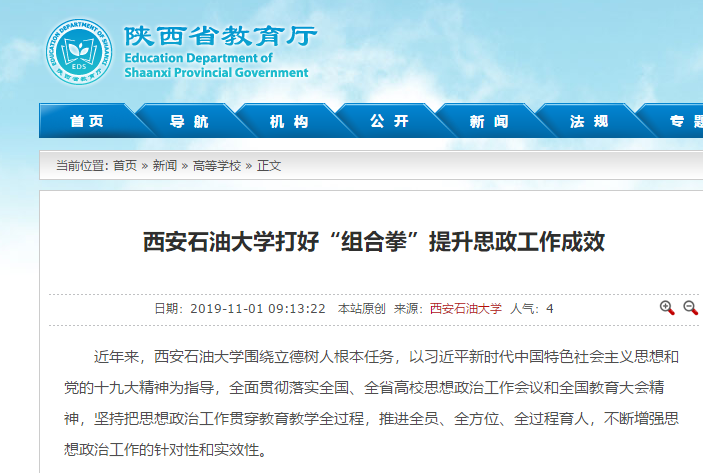【省教育廳】西安石油大學(xué)打好“組合拳”提升思政工作成效
