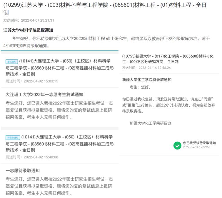 披星戴月走過的路終會(huì)以繁花以答。終于在四月初,王園媛成功調(diào)劑到江蘇大學(xué),楊思琦成功調(diào)劑到新疆大學(xué)。至此,535終于全員上岸。雖然一路艱險(xiǎn),一路波折,但是最終的結(jié)果沒有辜負(fù)她們的努力。