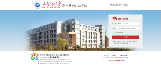 1.打開瀏覽器,輸入https://webvpn.xsyu.edu.cn或者點(diǎn)擊學(xué)校主頁下方信息服務(wù)欄目中的vpn系統(tǒng),跳轉(zhuǎn)至西安石油大學(xué)統(tǒng)一身份認(rèn)證平臺的登錄界面,如下圖: